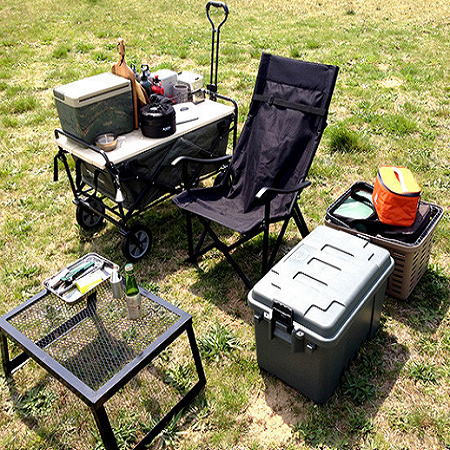 おすすめアイテムは焚火台やトング、ナイフなど強度が必要な物。