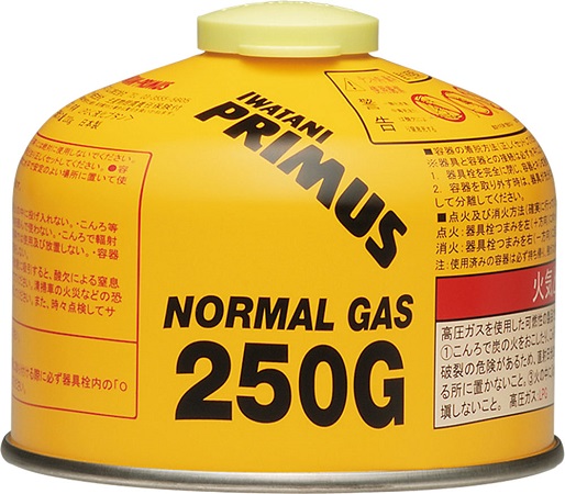 カセットボンベ缶に対して、こちらはアウトドア缶。クッカーなどにスタッキングできるようにデザインされている。火力が高く、寒い時期でも使えるのが特徴。値段が高く、ホームセンターやアウトドアショップでしか買えない。田舎へ行くと調達に苦労する。